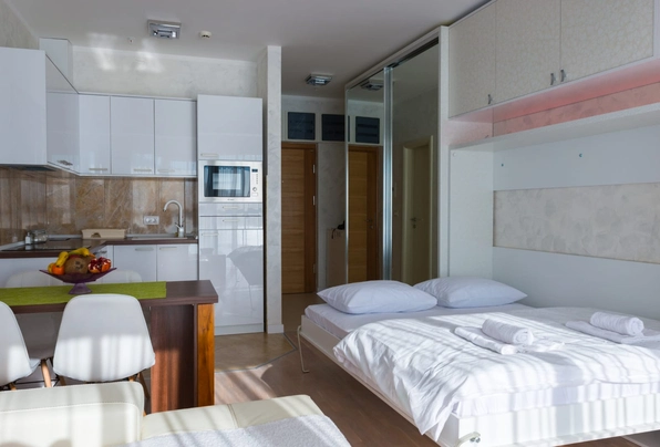 Обратите внимание на наличие всех удобств для вашего отдыха: кровать, бытовая техника, тераса, интернет, паркинг.