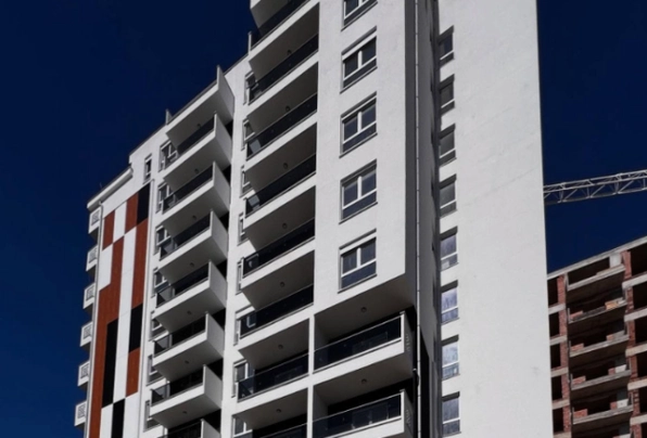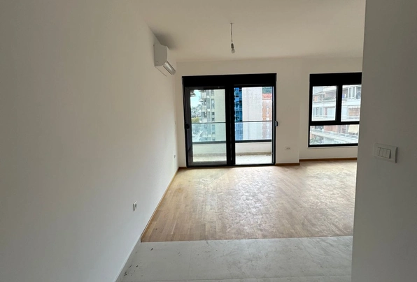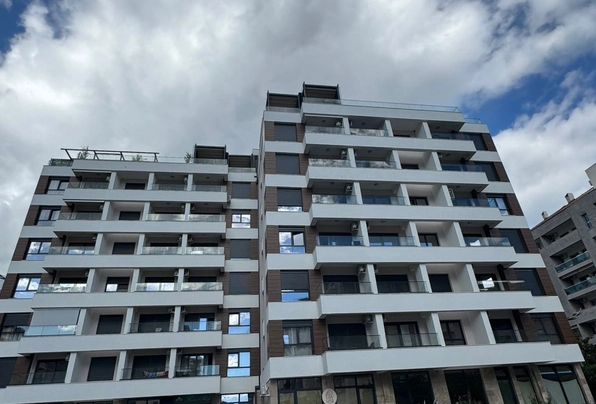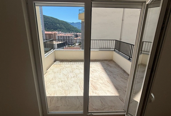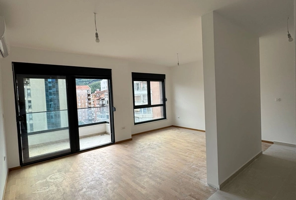 Продажа Будва № 7561. Новая квартира с 1 спальней, 58 м2+терраса, дом Перовича, рядом Мега-молл. Большая терраса с ви…