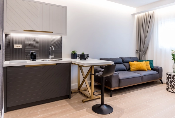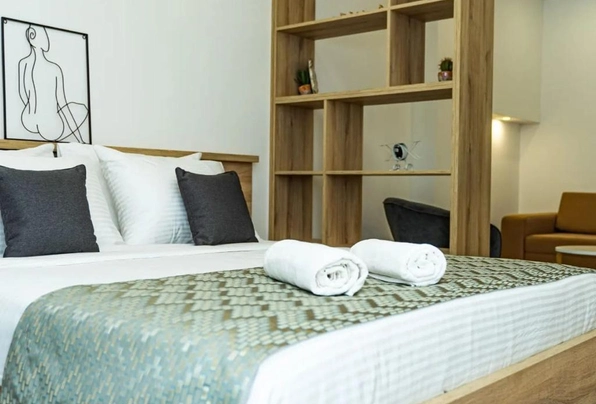 Аренда Будва № S347 Сдается НОВЫЙ апарт-отель возле моря в Будве на 8 апартаментов с 1 спальней, площадью 50м2. Площа…