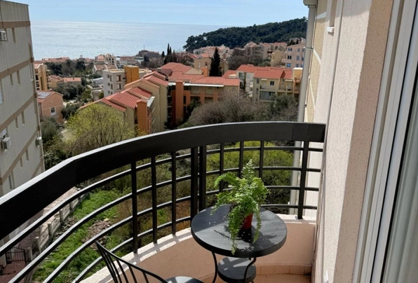 For sale in Becici #7595. New one-bedroom apartment, 42 m², on the first floor of a new building. Sea views from the …