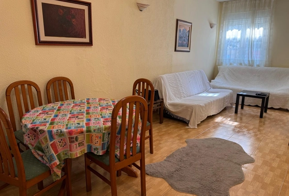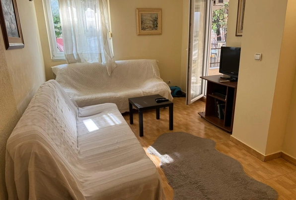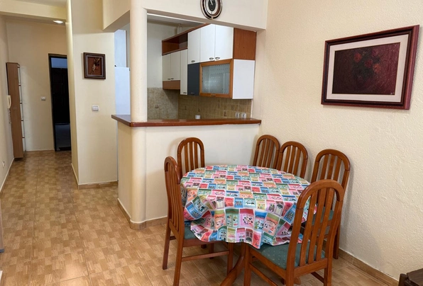 Budva, #7623 for long-term rent. The apartment is located on the 6th floor, has an elevator, and offers sea views. The 57 m² apartment consists of a living room with a kitchen and dining area, a terrace with sea views, two bedrooms, and two bathrooms (each with a washing machine and air conditioning). There is no garage parking, but there is ample parking around the building. A monthly parking pass at the TQ center is available for €120 per month. Payment terms include first month, last month, and deposit. Bills are billed separately.