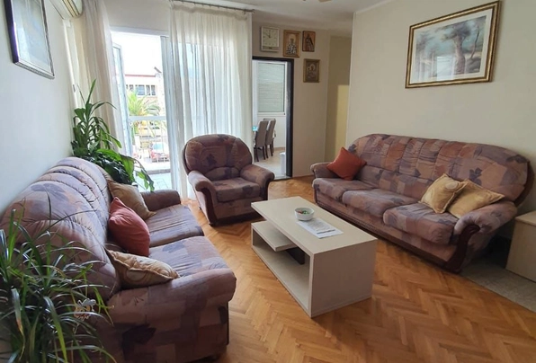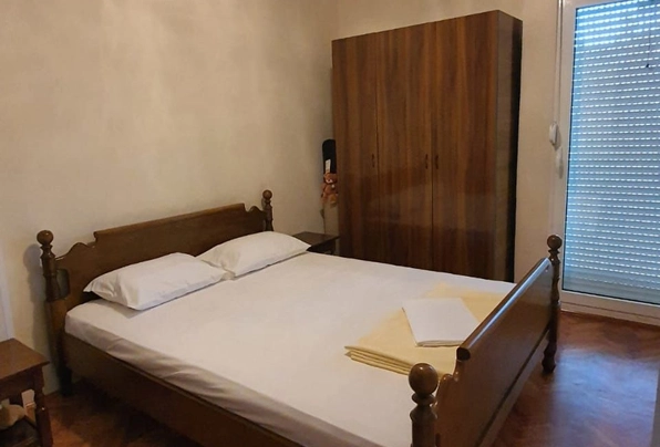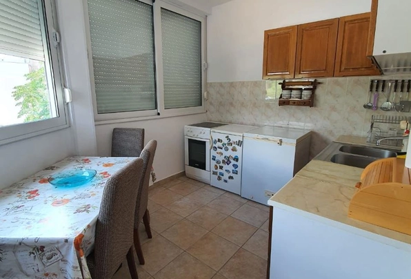 Budva for rent #7654. Long-term rental apartment (55 sq m) + 7 sq m terrace, 2nd floor, 2 bedrooms. Partially furnished. Located in the Rozino district, opposite the Mega store. School nearby. Payment terms: first month, last month, and deposit. Separate billing. Pets are allowed in the property.