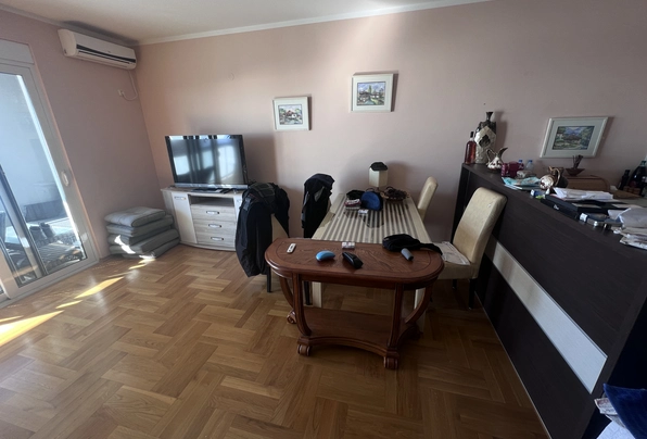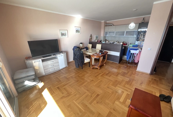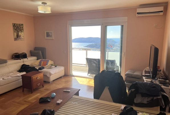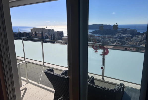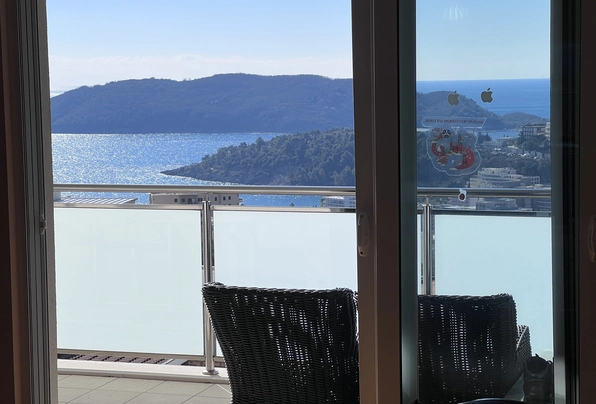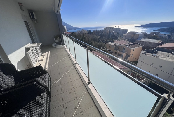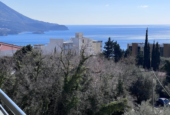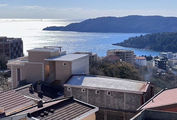 Sale Becici No. 2716. Becici, for sale apartment with panoramic beautiful views of the sea and mountains, large terrace, sunny south side, parquet, living room with large kitchen, 3rd floor, elevator, new house. Ivanovichi district, quiet, peaceful place, bath in the bathroom. The total area of the apartment is 70m2. The price includes 2 parking spaces in the garage.