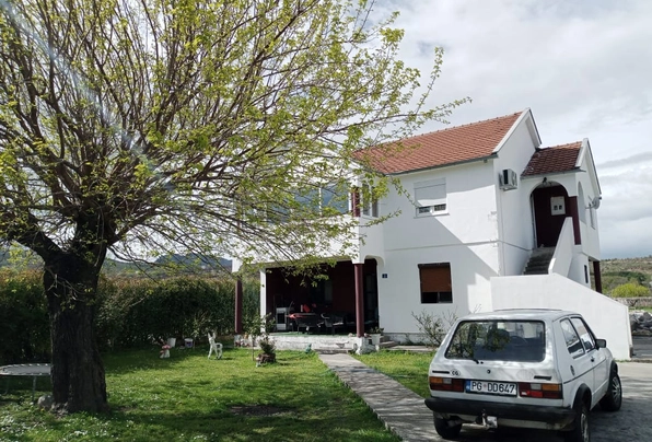 Sale Podgorica No. 2907. Two-storey house for sale in Podgorica. The house consists of 5 bedrooms, 3 terraces and 2 bathrooms. House area 220 m2. The plot with fruit trees and grapes has an area of 2200m2. Near school, kindergarten, shops, 5 km from the center.