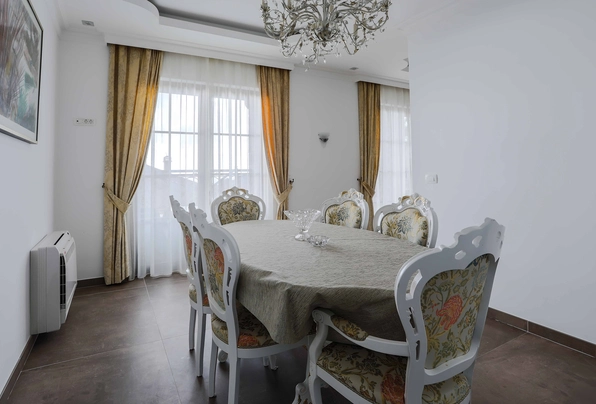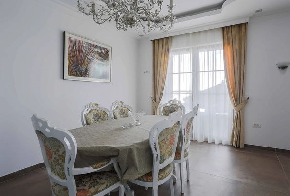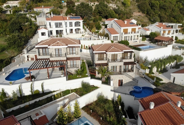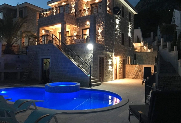 For Sale Sveti Stefan, Blizikuce Village #S352 For Sale: Luxury Villa with Sea and Mountain Views and a Pool Near the Sveti Stefan Peninsula in the Blizikuce Village. Private Sauna. Near the Island of Sveti Stefan. Sea and Mountain Views. Large Living Room Downstairs with Access to a Terrace with a Pool, Bathroom, and 3 Bedrooms on the Second Floor with Wardrobes. Fully Furnished with Luxury Furniture and Appliances. Blizikuci Area. Prestigious Gated, Guarded Community. Video Surveillance. The Villa is 200m2 Inside, Plus a Large Yard with a Terrace and Pool, a Separate Sauna with an Apartment, and an Extra Bedroom. Built in 2016m2. Beautiful Sunsets and High Mountains. Quiet Nights. All Furniture and Appliances Premium Class. Heated Pool with Beautiful Lighting and a Hydromassage System. There are many beautiful beaches nearby, 7-10 minutes by car. Two villas are sold exclusively together.