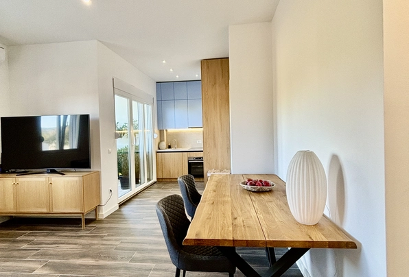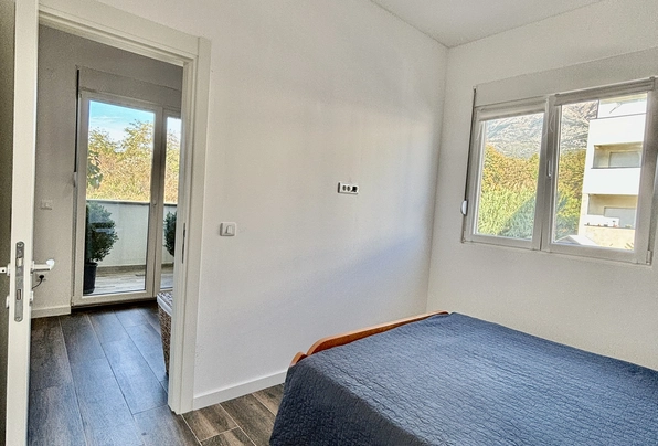 Sale ID4724. For sale new designer apartment in a low-rise residential complex in Radanovici (10 minutes to Tivat airport, 20 minutes to the old town of Budva by car). Apartment 45 m2, spacious kitchen living room, bedroom, bathroom, terrace. 1st floor of a three-story building. The complex has a playground, restaurant, bakery, beauty salon, a barrier at the entrance. Documents in full order, 1/1. Parking space included in the price.