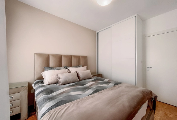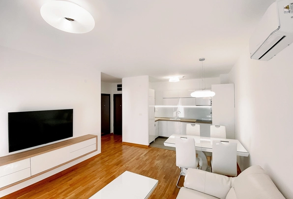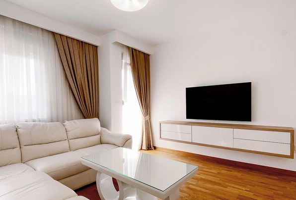 FOR SALE № S516 Luxury two bedroom apartment for sale in Podgorica!This luxurious and exceptional two-bedroom apartment is oriented to the east, so it is "bathed" in the sun in the morning until noon.It is extremely pleasant in summer and winter due to the excellent insulation and orientation of the apartmentThe buildings are built of high quality materials surrounded by greenery and close to the river Moraca and the hill Gorica (Zagorica side)The interior walls are made of gypsum blocks d = 20cm, and in the living and sleeping rooms and the hallway the floor is made of three-layer parquet type "Tarkett" - brushed oak, and the ceramic tiles that are placed in the bathroom and kitchen are first class, and it is Spanish and Italian ceramics.It is built into the apartment"Multi Split System" because built-in two-bedroom apartments do not have built-in air conditioning. The air conditioning in the living room is 12 "and in both bedrooms there are two air conditioners of 9"On the outer wall is a facade thermal insulation system made of styrofoam 10 cm thick, which automatically reduces the use of heating and cooling systems and is reflected in the electricity billsThis type of facade provides comfort that suits every season:it's warm in the winter and fresh in the summer,and in addition, this type of facade provides a perfect wall finish and excellent resistance to cracking.The structure of the apartmentHallway,Living room with dining area, kitchen,2 bedrooms bathroom, toilet,balcony and within the balconystorage room where the outdoor air conditioning unit, cleaning agents, etc. are locatedThis luxuriously equipped apartment is in a new building in a great location near the river Moraca and the hill Gorica (Zagorica side)and only 3 minutes by car to the center of Podgorica or ten minutes of easy walkingThe apartment offers a fantastic view of the hill Gorica and the old part of Zagorič, which is full of greenery and this is one of the few locations that is not concreted like some locations in Pg and is therefore ideal for all those who love nature and peace.The area is ideal for family people.The apartment is fully luxuriously furnished and lasted half a year the whole process of designing, importing and furnishingAll things were taken out by hand and every detail was done to perfectionThe kitchen is made of the highest quality MDF High Gloss materials and also all the carpentry, closets in the hallway and in both bedrooms are made from floor to ceiling from the highest quality mdf materials.In the guest toilet and in the bathroom, there are also custom-made chests of drawers made of excellent materials and the tiles are made to measure from the highest quality marble on both chests of drawers.Of course both in the bathroom and in the guest toilet I threw the sinks that came and bought modern quality superstructure sinksVeAll chests of drawers in the kitchen, hallway, bathroom and toiletthey open on a "push" system so there are no handles, which stylistically gives a special note, and not to mention the practicality, and of course it's all more expensive and worth the effort and investment.The shower cabin is made to measure from thicker tempered glass so that it is not possible to break the glass and the possibility of injuries that can occur when breaking cheap shower cabins, which are mostly on the market, has been avoided.JeIt is best to enter some apartments that are equipped as standard and see what the difference is not only in practicality, quality but in the beauty of the design, which is extremely important to me.The apartment is habitable and fully furnished ready for sale.The new owner just needs to bring personal belongings and literally the same day to move in without a headache and rush with the masters, bringing in and furnishing and not wasting time and nerves ... he will understand who at least once furnished the apartment I am talking aboutThe curtains were ordered from Italy in the living room and bedroom and everything is exceptionally and beautifully blended in design.Plaster garnishes were also made in the living room and both bedrooms, which gives a special note, and the complete apartment is additionally painted with white acrylicTv chest of drawers is extremely nice fitted, ie the color of the frame plate follows the color of the kitchen worktop made of natural oakIt is about more expensive materials, but because of the effect that is obtained when you see the apartment live, it justifies the invested time, effort and money.All cables are hidden and this is done perfectly so there are no cables on the walls from the landline, router, socket and TV cables etc.The apartment is fully equipped with appliances and everything was bought in Tehnomax and of course all invoices and guarantees are preservedThe microwave, oven and also the dishwasher have never been used and they still have cellophane on them.The ves machine jw also bought in Tehnomac s Tv is a new generation Samsung Q series of 55 ”which offers huge possibilities and the quality is superfluous to discussSo, sbi devices and white goods and tv were bought new and everything is under warranty.Also, the complete lighting (Italian) was done according to the project in the whole apartment and a lot of time was wasted waiting for the goods to arrive and for everything to fit in style, but the effect that was achieved was worth the effort.The total registered area of the apartment with two bedrooms is 65 m2
