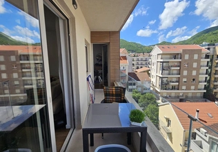 Sale ID7158. CENTER - THREE-BEDROOM APARTMENT Situated on the fifth floor (not the top) of a new building and covering an area of 110 m2. The apartment has three rooms, consisting of an entrance hall, a spacious living room with kitchen and dining room, three bedrooms, a bathroom, a toilet and two terraces. This south-facing apartment is fully equipped and is sold as such. There is an option to purchase a garage space, which consists of two parking spaces joined into one and closed with roller doors. The price is 29,000 euros.