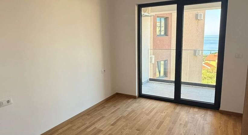 Sale Becici #7225. One-bedroom apartment, 45 m2, 1st floor of a new building. Terrace with partial sea view. The apartment is not fully furnished. It is sold as in the photo. There is a possibility to purchase a garage space for 20,000 euros.