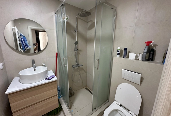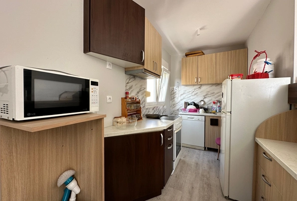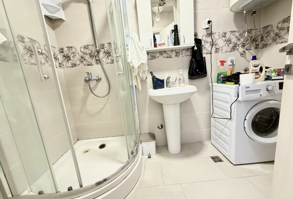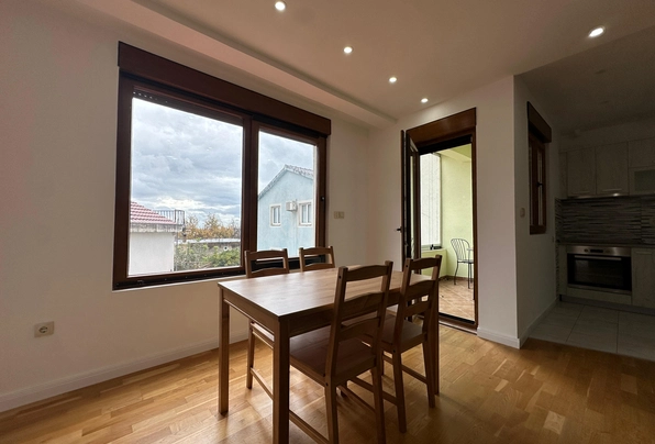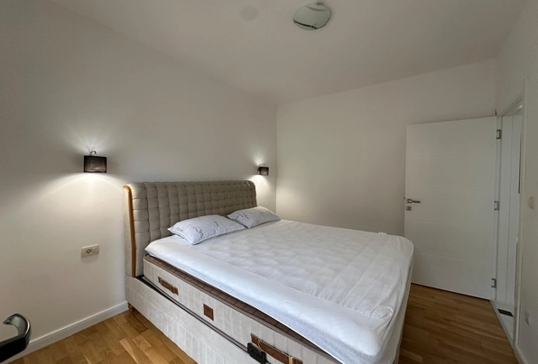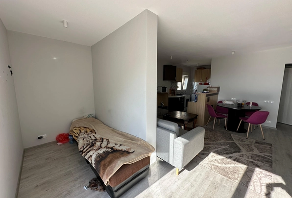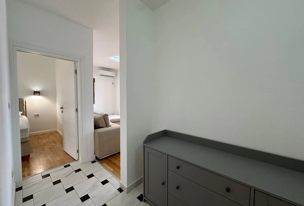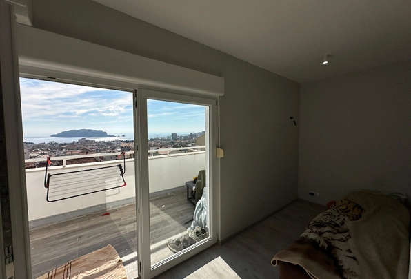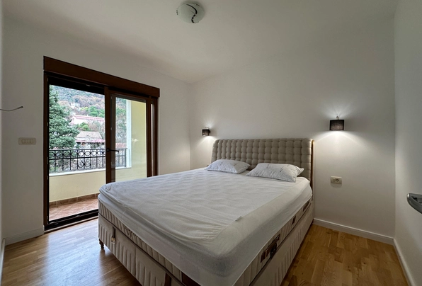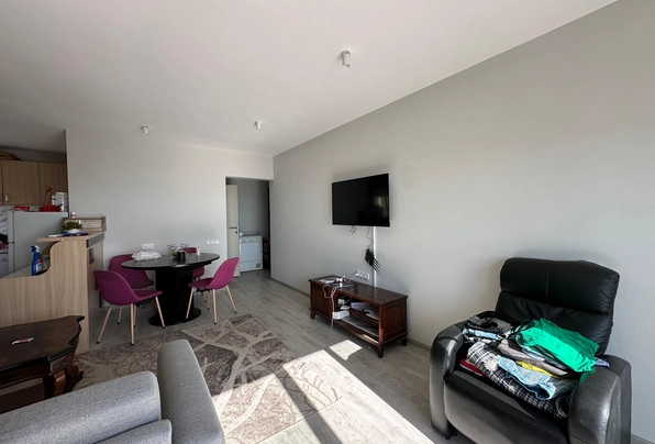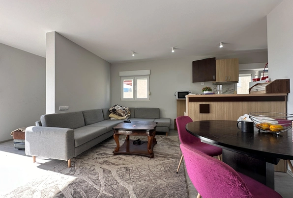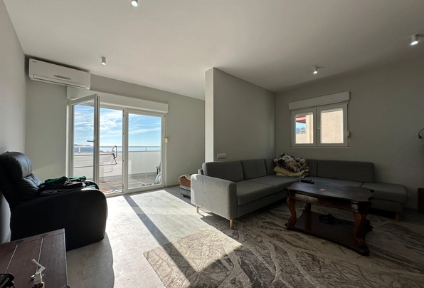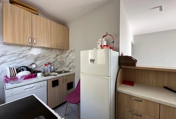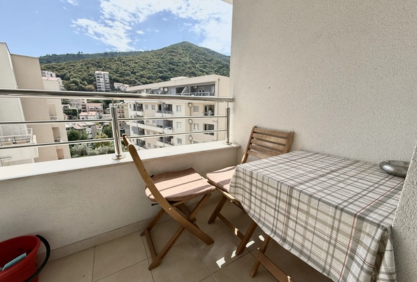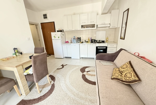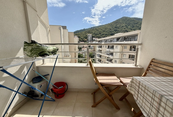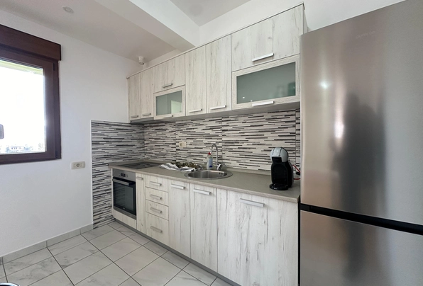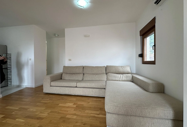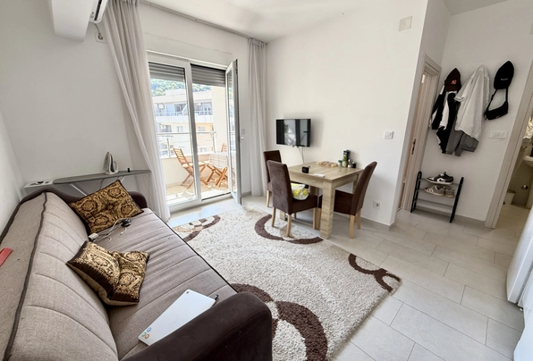 Budva for sale #7461. A cozy 45 sq m apartment in a new building with an elevator is for sale in the Podkošljun neighborhood, directly above the HDL supermarket. The apartment is on the 4th floor, fully furnished and equipped with modern appliances—ready for occupancy. Features include a spacious living room with an open kitchen, a bedroom, a bathroom, and a terrace with mountain views. Advantages: new building with an elevator, excellent location—close to shops, cafes, pharmacies, and bus stops, ready for occupancy—ideal for comfortable living or rental. Budva is a popular coastal town in Montenegro, combining developed infrastructure with a resort atmosphere.