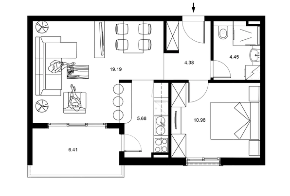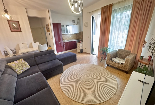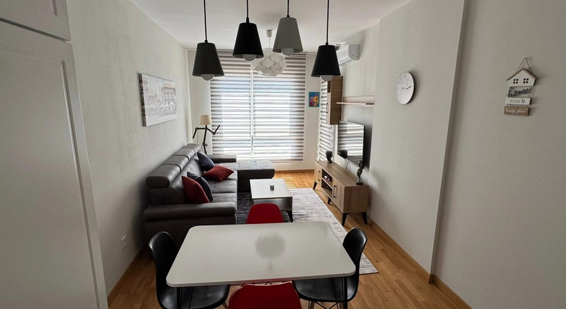 Becici for sale #7554. A modern, furnished, one-bedroom apartment of 43 sq m is for sale in Becici. The apartment is located on the 6th floor of a building with an elevator. Ideal for occupancy or rental. Peaceful, quiet location. The beach is 300 meters away. All amenities are nearby.