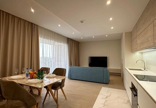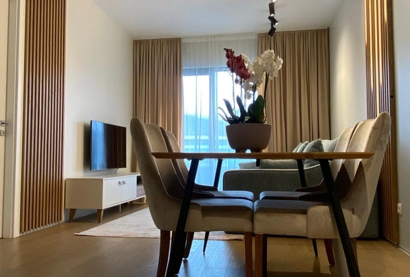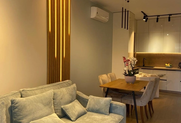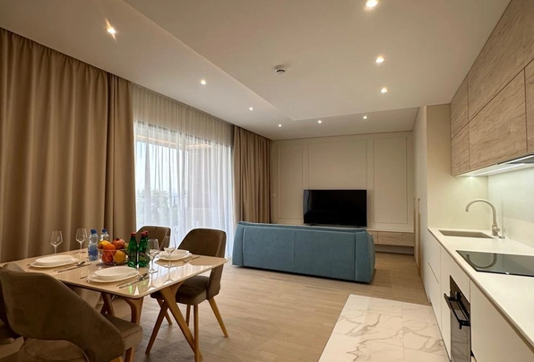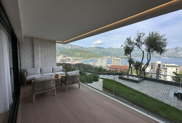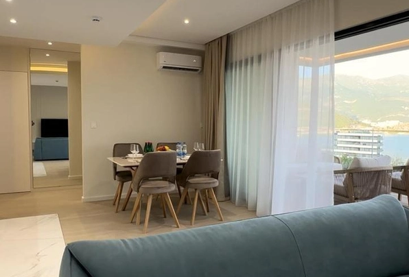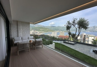 Budva for sale #7589. One-bedroom apartment in the city center for sale. Premium class! Sea view. The apartment is fully furnished and equipped for comfortable living! New building, elevator. Ground floor. Parking. Pool.