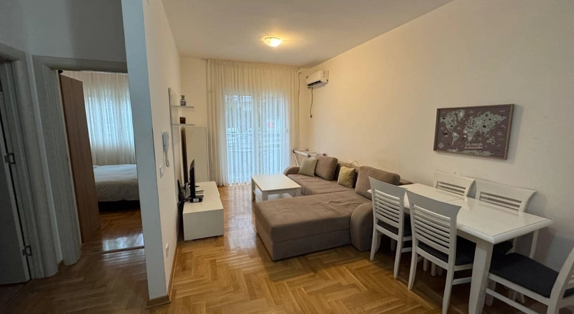 Budva for sale #7598. One-bedroom apartment for sale in Budva, new building, Maslina Street, near the city center. Elevator. Terrace with mountain views. Parquet flooring. 42 sq m. 7-minute walk to the city center.