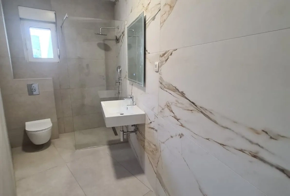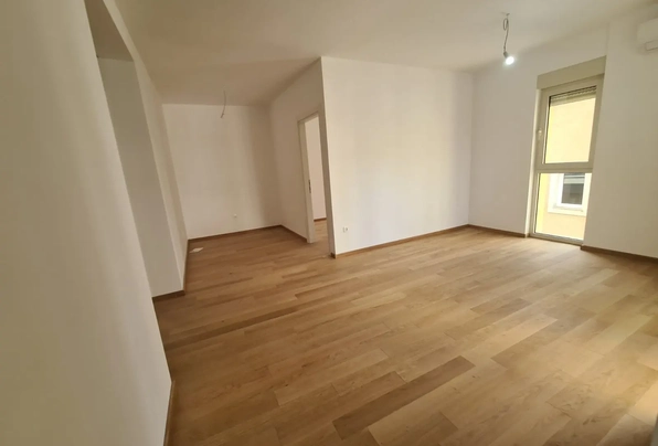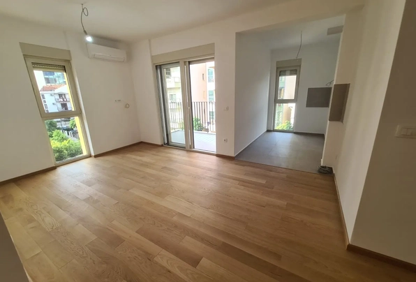 Budva for sale #7644. Located in the very center of the city, just steps from the beach, this apartment under construction is for sale. It is located on the second floor of a residential building under construction and occupies 65 square meters. The apartment consists of an entrance hall, a living room with a dining area, two bedrooms, a bathroom, a toilet, and a terrace. Payment is negotiable with the owner, depending on the progress of construction and completion. A garage parking space is available for purchase.