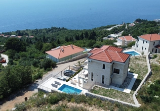 Rezevici for sale #7690. This exclusive stone villa in Rezevici is for sale. Situated in a prestigious location above the main road, it offers unobstructed panoramic views of the sea and surrounding landscape. The villa measures 203 m² and sits on a landscaped plot of 478 m². The three-story building combines modern comfort with authentic Mediterranean architecture. The ground floor is a fully equipped apartment with a spacious living room, kitchen, comfortable bedroom, bathroom, storage room, and utility room. This area offers direct access to the courtyard, leading to the pool and terrace overlooking the sea. The second floor consists of a large, bright living room, modern kitchen, dining room, and a spacious terrace. The third floor includes three bedrooms, each with its own modern bathroom. The courtyard features a swimming pool surrounded by a relaxation area. Four parking spaces are located in front of the villa. This property is ideal for residential use, vacations, or long-term investment.