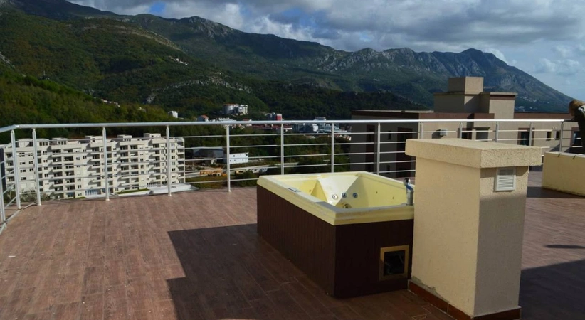 ID7734 for sale. Two-bedroom apartment for sale in Becici with a private rooftop jacuzzi (80 m²), swimming pool, and parking. Becici, 800 meters from the beach of the Budva Riviera. Shops, cafes, and restaurants are within walking distance. The area is suitable for year-round living and recreation. New residential building with a swimming pool and gym. Underground parking is included in the price, which is rare for the coastal area. About the apartment: Area 72 m², 2 bedrooms, 2 bathrooms, Top floor, Private rooftop 80 m² with jacuzzi, Unfurnished - opportunity to design the interior to suit your needs. The private rooftop is suitable for relaxing and entertaining. Access to the pool and gym. Estimated rental yield is 5-10% per annum during the tourist season. The property is suitable for both permanent residence and for rental. Price: €163,000. Price per m²: €2,264 - competitive offer on the market.
