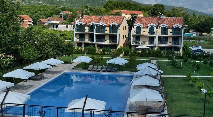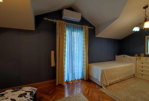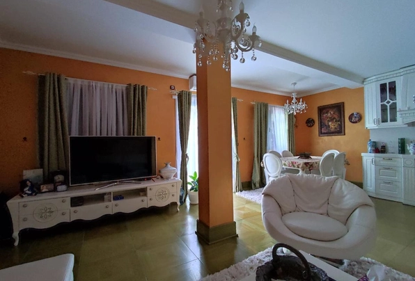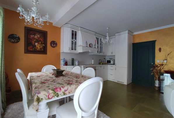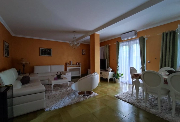 Lastva #7735 for sale. A cozy home for a comfortable family life in the Lastva village. The complex features a gated, guarded community, a swimming pool, children's and sports fields, and a parking area. The area is 120 m² + 35 m² terrace. Three floors. It features a spacious living room with a kitchen area, three bedrooms, two bathrooms with a bathtub and shower, a guest toilet, two terraces, and a patio.
