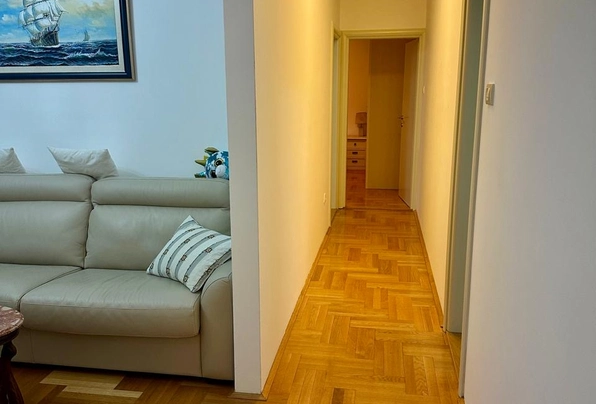 For sale: ID7917. This spacious 85 m² apartment is located in the Becici district on Alekse Dantica Street, just 500 meters from the sea. It is on the third floor of a modern building with an elevator. It features a functional layout with an entrance hall, guest bathroom, bright living room, kitchen with dining area, bathroom, two bedrooms, and two terraces with sea views. The property is fully furnished and ready for occupancy, making it an excellent choice for both comfortable coastal living and an investment opportunity.