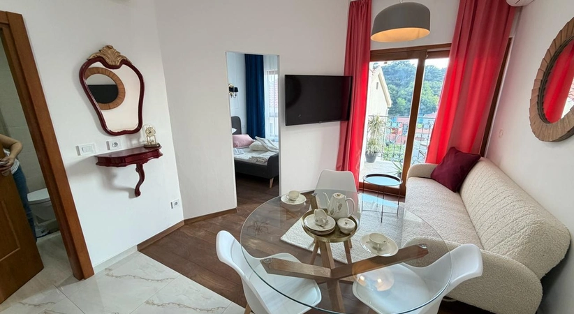 Petrovac #7920 for sale. A cozy one-bedroom apartment in a new building is available for sale. 33 m², second floor. Fully furnished. Sea views from the terrace. Excellent for living or renting. Marketable format and sought-after location.