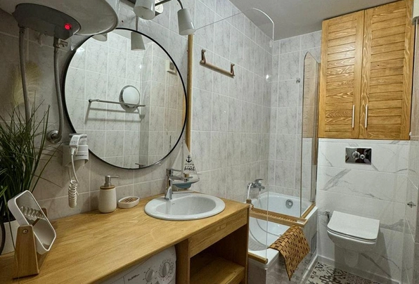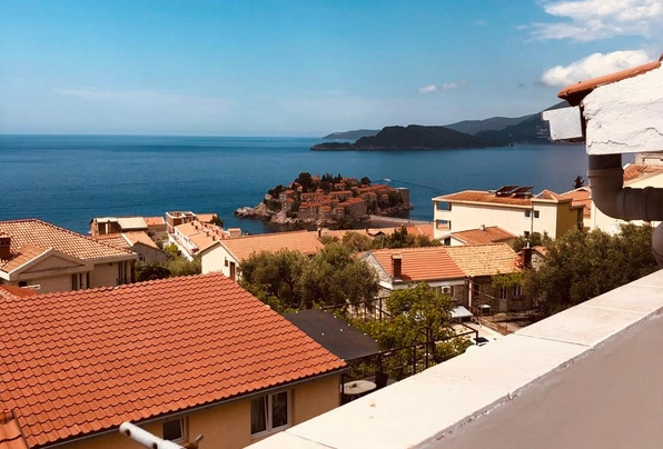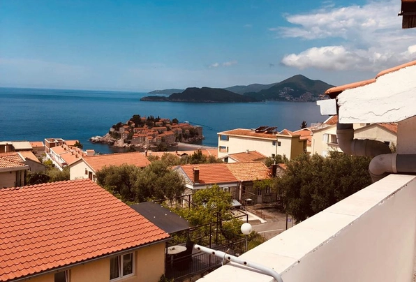 Sveti Stefan #7931 for sale. One-bedroom apartment on the 4th floor. No elevator. Sea view. Furnished. Outdoor parking nearby. Area: 41 m².