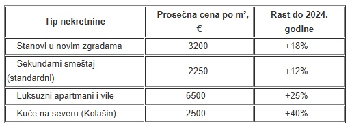 1. Opšti trendovi i prosečna cena po kvadratnom metru u Crnoj Gori