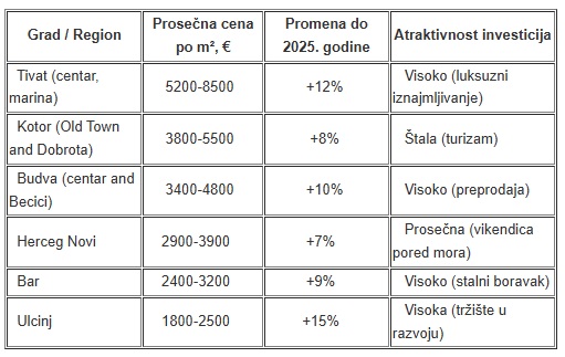 U ovom članku ćemo analizirati dinamiku i trendove cena, uporediti cene po kvadratnom metru po gradovima i odrediti najbolja mesta za kupovinu nekretnina u Crnoj Gori u 2026. godini.