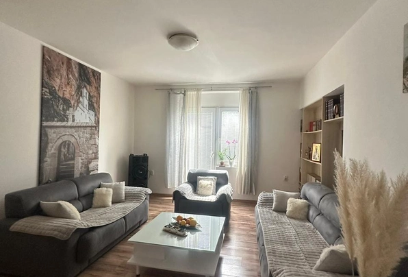 Iznajmljivanje u Tivtu #7604. Dugoročni zakup kuće u Tivtu, 90 m², 2 spavaće sobe, dnevna soba sa kuhinjom i ostava koja se može pretvoriti u dodatnu spavaću sobu. Privatno dvorište i parking. Dva minuta od centra grada. Uslovi plaćanja: prvi mesec, poslednji mesec i depozit. Odvojeno plaćanje.
