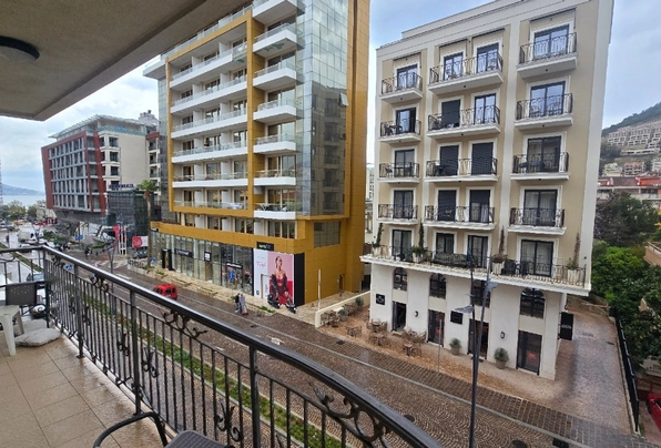 Prodaja Budva #7171. Centar Budve preko puta TQ Plaze, 3. sprat, lift, velika terasa sa delimičnim pogledom na more. Stan sa 2 spavaće sobe, moderan dizajn. Kafići, restorani, prodavnice u blizini. Potpuno spreman za udoban život ili za izdavanje. Bez dodatnih ulaganja!
