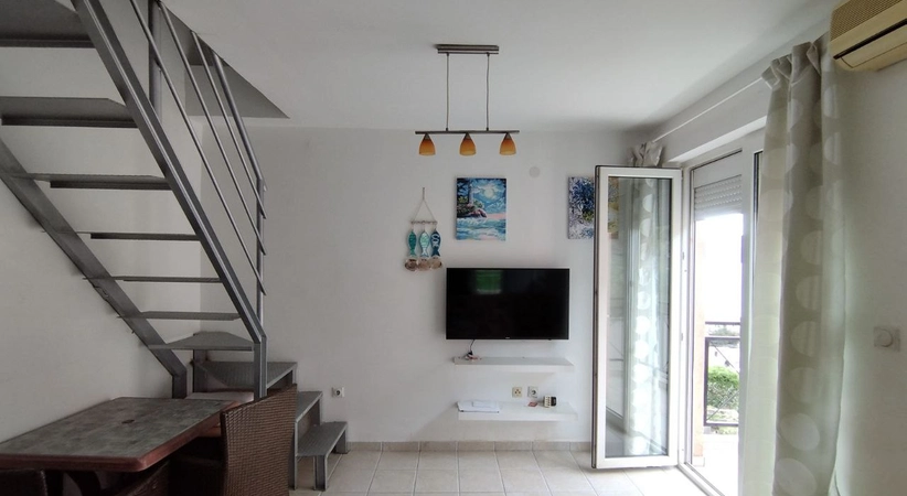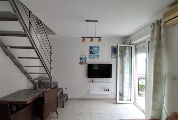 Prodaja Herceg Novi #7208. Herceg Novi, Kumbor. Na prodaju lep stan sa pogledom na more, površine 42 m2. Stan na dva nivoa. Prvi - dnevna soba sa kuhinjom, kupatilo i dva balkona. Drugi nivo - dve male spavaće sobe, svaka sa svojim kupatilom. Udaljenost od mora oko 200 metara. Moguće plaćanje u Rusiji.