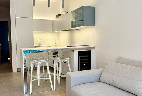 Prodaja Bečići #7363. Stan sa 2 spavaće sobe, 58 m2, kompleks Volna. Novi nameštaj i uređaji. Bočni pogled na more sa terase. 5 minuta do plaže. Stan je potpuno spreman za udoban život ili za dugoročnu investiciju. Bez dodatnih ulaganja! Postoji mogućnost kupovine garaže uz doplatu.