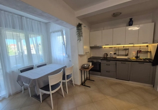 Petrovac na prodaju #7434. Ovaj udoban dvosoban stan nalazi se na 1. crnogorskom spratu (2. spratu) u četvorospratnoj zgradi. Sadrži udoban ulazni hol sa plakarom, dnevnu sobu sa velikom sofom na razvlačenje sa klima uređajem, novu kuhinju sa mašinom za pranje sudova, garderober ili radni kutak, jednu spavaću sobu sa bračnim krevetom i plakarom, i drugu spavaću sobu sa krevetom na sprat, radnim stolom i plakarom. Ima pogled na mirno zeleno dvorište i mali pogled na more. Ukupna površina je 60 m2 (37 m2 + zatvorena terasa pretvorena u zasebnu spavaću sobu). Udaljenost do mora sa peščanom plažom je 650 metara. Autobuska stanica je udaljena 2 minuta hoda. Prodavnice, restorani, kafići i pekare su udaljeni 5-7 minuta hoda. Zatvoreno zeleno dvorište sa rekreativnim prostorom. Javni parking je dostupan u blizini zgrade (uvek ima mesta). Dobar potencijal za izdavanje.
