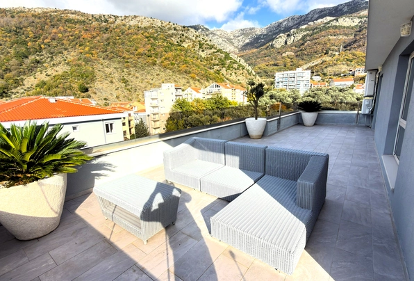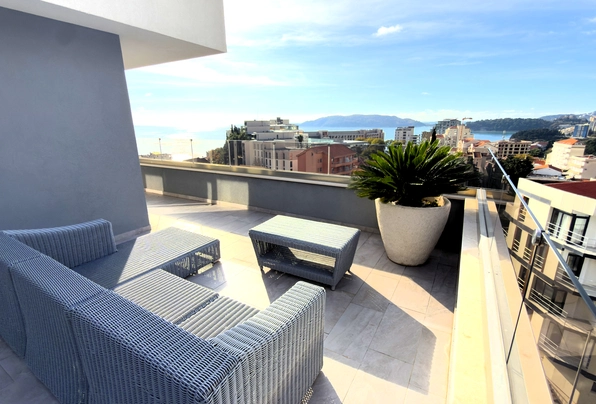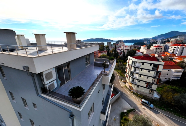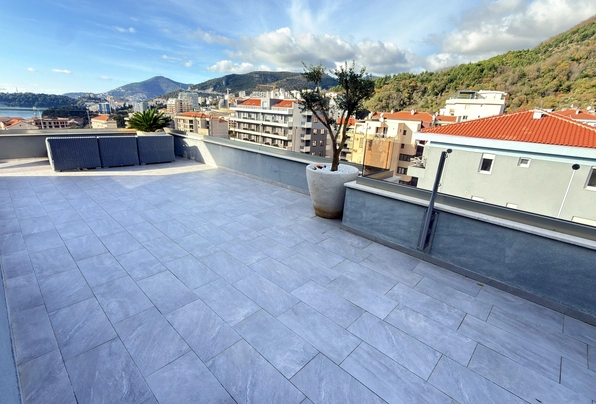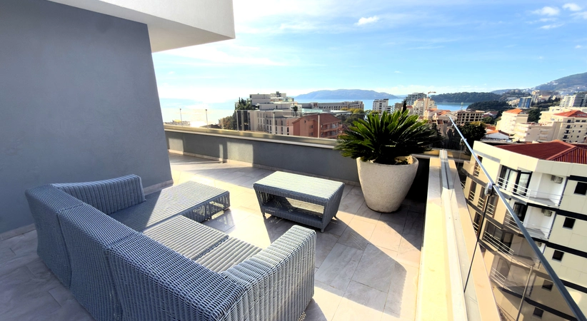 Luksuzni penthaus sa velikom krovnom terasom, garažnim prostorom i ostavom, Bečići
