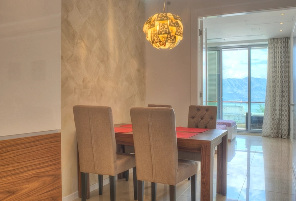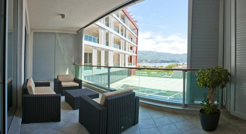 Na prodaju: ID 7766. Potpuno namešten, renoviran po meri stan sa 2 spavaće sobe i prostranom terasom sa pogledom na more u kompleksu TQ Plaza na prvoj liniji. Ovaj potpuno namešten i opremljen stan od 95 kvadratnih metara nalazi se na 3. spratu kompleksa TQ Plaza u samom centru Budve, 100 metara od plaže i 150 metara od Starog grada. Panoramski prozori nude neprekidan pogled na more. Stan takođe poseduje veliku terasu od 17 kvadratnih metara, pristupačnu iz svake spavaće sobe. Plafoni su visoki 3 metra. Stan je registrovan kao poslovni objekat, što ga čini idealnim za kućnu kancelariju, lični boravak ili posao. Adresa stana može se koristiti za pravnu registraciju pravnog lica. Stan sadrži potpuno opremljen dnevni boravak, kuhinju sa trpezarijom, veliko kupatilo i 2 spavaće sobe, svaka sa svojim izlazom na terasu sa pogledom na more. Stanovi su potpuno opremljeni za iznajmljivanje: mašina za pranje sudova, rerna, šporet, mikrotalasna pećnica, mašina za veš, 2 televizora, sef i još mnogo toga. Apartmani su opremljeni centralnom klima uređajem i grejanjem, brzim internetom i kablovskom televizijom. Kompleks se nalazi na prestižnoj i pogodnoj lokaciji, na samo 100 metara od mora, blizu starog grada Budve i luke za jahte, kao i svih potrebnih sadržaja.