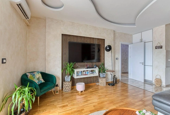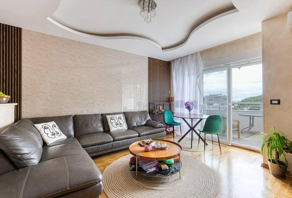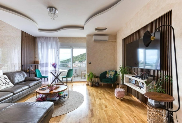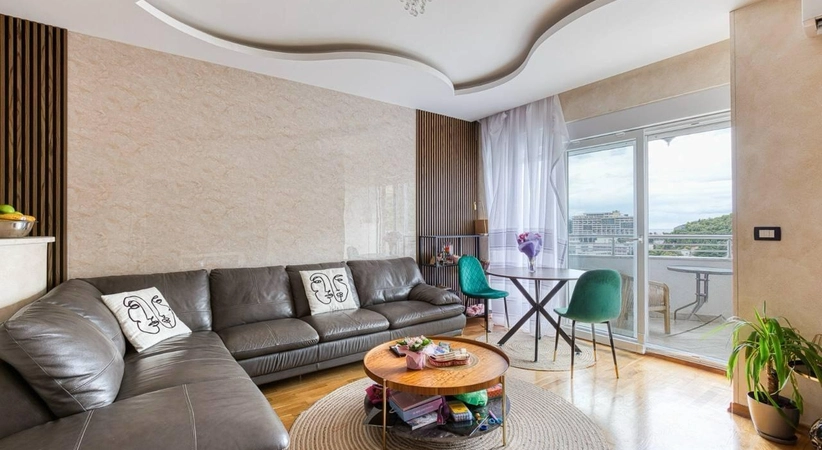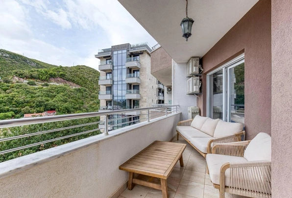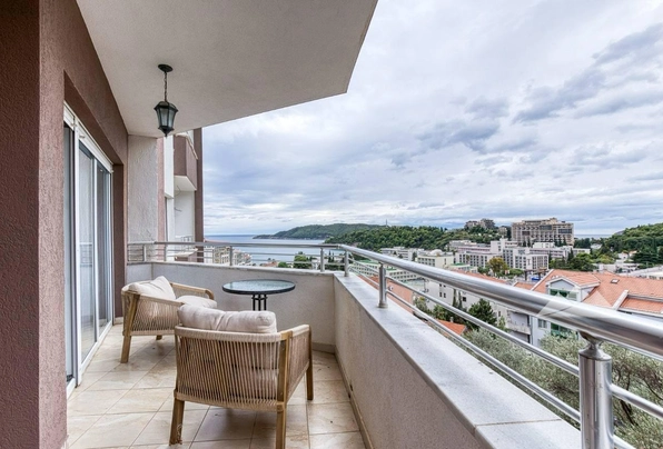 Oglas br. 7811. Trosoban stan na prodaju u Bečićima, 150 metara iza nove pošte. Kompletno namešten. 86 m². Pogled na more. Parket. Sunčana strana.