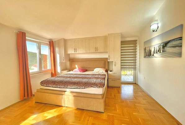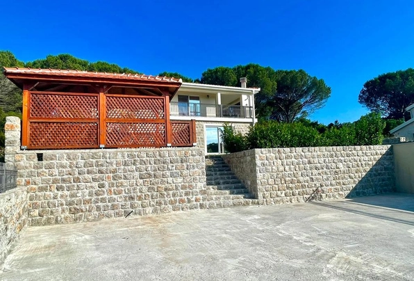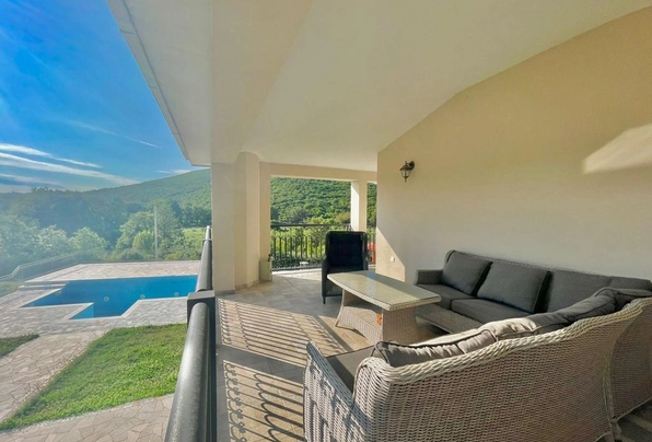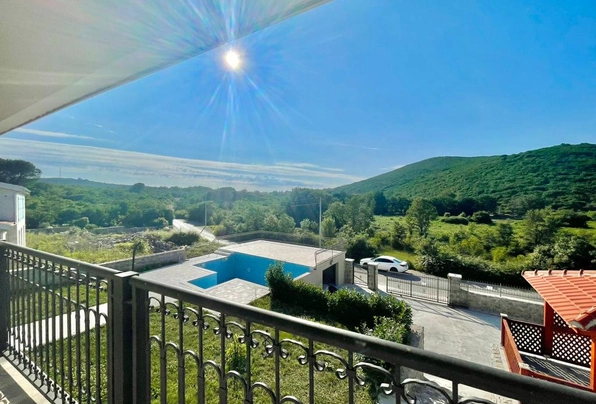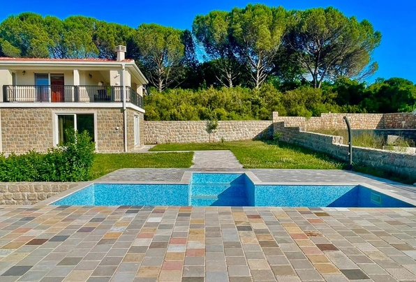 Kuća na prodaju br. S837. Vila sa tri spavaće sobe sa bazenom, 2 kupatila i velikim dnevnim boravkom, opremljena novim nameštajem, garažom 60 m2 i parkingom. Kuća oko 200 m/2 i plac 750 m/2, selo Zagora 5 km od plaža Jaz, Trsteno, Zagora i Ploče 10 km od Budve.