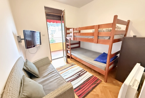 Аренда Будва № 1096 Сдается квартира с 3 спальнями, паркинг возле дома, две террасы с видом на море и горы, паркет, два санузла. Интернет и кабельное. Район Подкошлюн за рестораном Кужина. 2 этаж, лифт. Южная солнечная сторона. До моря 15 минут пешком. Есть возможность отдельно арендовать паркинг место в подземном паркинге. Запрещено содержание домашних животных.