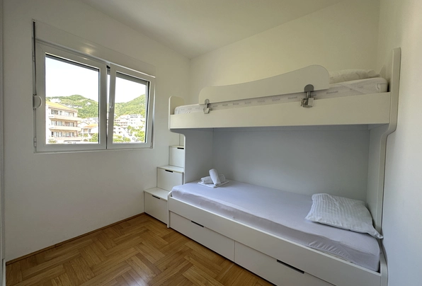 Аренда Будва № 7148. На долгий срок уютная квартира с 2 спальнями, 2 террасами и 2 санузлами, 81 м2, напротив обштины…