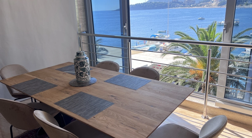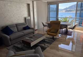 Аренда Будва № 3423 Квартира с 2 спальнями с панорамным видом на море на первой линии в Рафаиловичи. Площадь 85м2. До моря 10 метров. Этаж второй русский. Лифт. Новый ремонт, мебель и техника.
