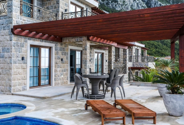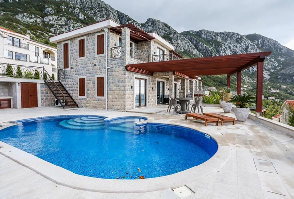 Аренда виллы в Близикучи №4294. Сдается вилла на круглый год или до сезона в элитном посёлке с видом на море , расположенный в 15 км от Будвы Предлагается к аренде не большая, на 2 этажа вилла со своим бассейном Территория 500 кв м Дом имеет 260 кв м с терассой 3 спальные комнаты, 2 сан узла Камин Вид на море Паркинг На первом этаже расположена гостинная с кухней В посёлке расположены 2 ресторана, 6 монастырей с прекрасными виновными площадками В 10 минутах езды пляж Crvena glavica