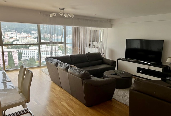 Аренда Будва № 4679 Сдается на круглый год квартира Люкс с 1 спальней с панорамным видом на море и горы в Будве на первой линии до моря. 9 этаж, лифт. Панорамные окна. Паркет. Комплекс расположен на полуострове Завала, идеально подходящие для комфортного проживания семьи или пары. **Качественная отделка**: во всей квартире уложен паркет, создающий атмосферу уюта и комфорта. - **Современная система кондиционирования** (сплит-система) обеспечивает идеальный микроклимат в любое время года. **Инфраструктура комплекса:** Комплекс предлагает широкий спектр удобств для комфортной жизни: рестораны, кафе, спа-центр, школа, детский сад и многое другое, что делает проживание здесь не только комфортным, но и удобным для семьи. Плошадь 80м2. Обслуживание 130е в месяц включено в цену. СВОБОДНА С 1 ИЮНЯ !!!