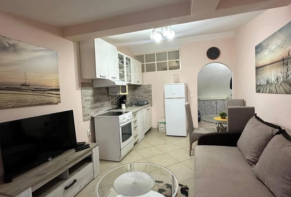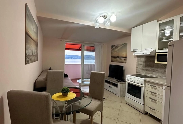 Аренда Тиват № 4994. Сдается квартира с 1 спальней на длительный срок. В квартире есть все необходимое для комфортного проживания. Вид на море. Личный паркинг. Этаж 4. Площадь квартиры 45 м2. до моря 50 метров. Условия оплаты: первый месяц, последний и депозит. Счета отдельно.