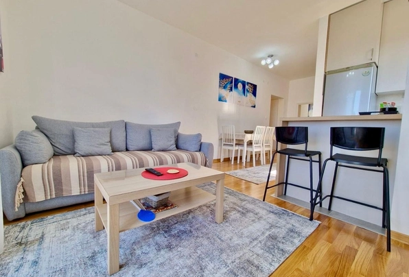 Аренда Бечичи № 5049. Квартира в Бечичи на долгий срок с 1 спальней, 47 м2, новый дом с лифтом, 3 этаж. Вид на море со всех комнат. До пляжа 500 метров. Современная мебель и бытовая техника. Есть гаражное место. Условия оплаты: первый, 2 последних месяца и депозит. Коммунальные услуги оплачиваются отдельно. Запрещено содержание домашних животных.