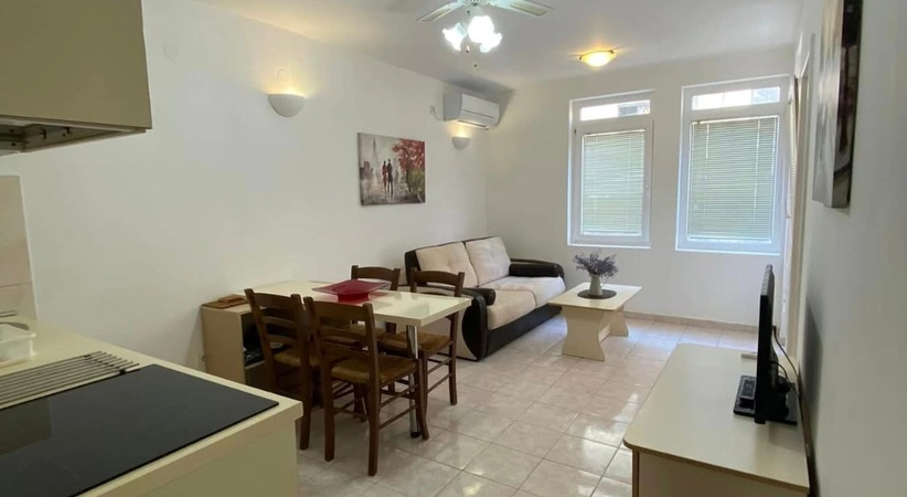 Аренда Будва № 7375. На год и выше квартира с 2 спальнями, 50 м2, 1 высокий этаж за заправкой ЭКО. Квартира полностью меблирована и готова к комфортному проживанию. Рядом вся инфраструктура, до набережной 5 минут. Все счета и паркинг включены в стоимость аренды. Условия оплаты: первый месяц, последний и депозит.