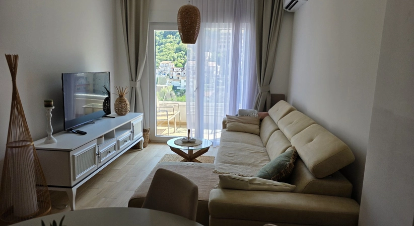 Аренда Будва № 1778. Сдаётся квартира в Будве. Хороший дизайн квартиры. Апартаменты находятся в новом доме рядом с ма…