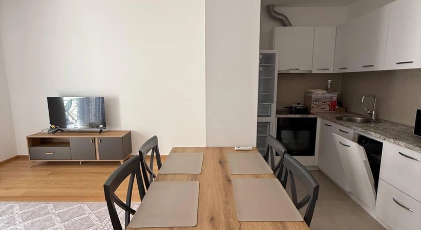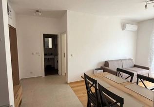 Аренда Бечичи № 7400. На год и более квартира с 1 спальней, 44 м2, 4 этаж новый дом с лифтом. Квартира оборудована всем необходимым для комфортного проживания. Есть подогрев пола в ванной комнате, осушитель воздуха, посудомоечная машина, духовка, микроволновая печь. Солнечная сторона. С террасы вид на море. Квартира сдается впервые. Условия оплаты: первый месяц, последний и депозит. Счета отдельно. Разрешено проживание с маленькими собачками под дополнительный залог.