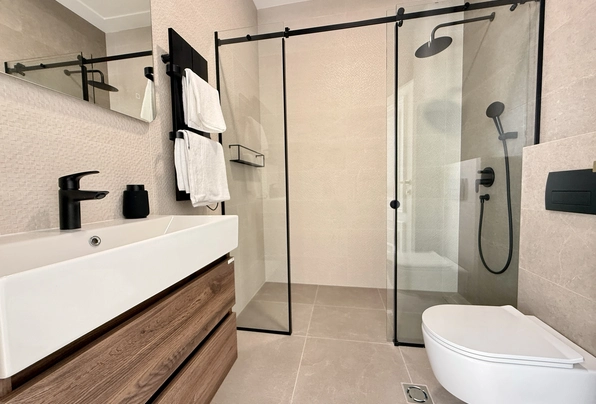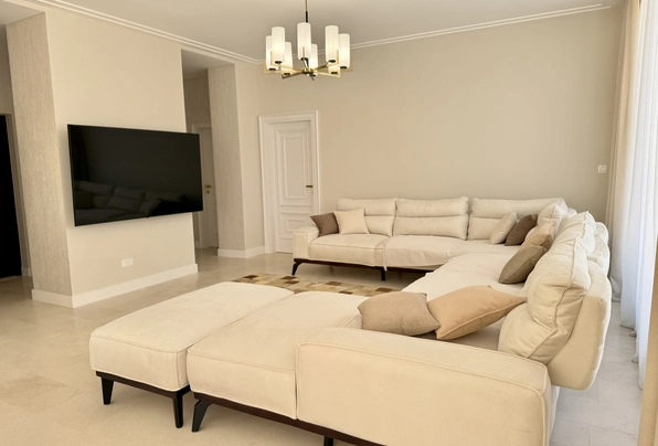 Аренда Бечичи № 7440. На долгий срок роскошный пентхаус площадью 200 м² в одном из самых привлекательных районов Бечичи, всего в 200 метрах от моря. Просторная, светлая и функциональная квартира идеально подходит как для комфортного проживания. Характеристики: 3 просторные спальни, 2 современных санузла, большая гостиная, совмещённая с кухней и обеденной зоной, панорамные окна и терраса с великолепным видом на море и горы. Преимущества: престижный район с развитой, инфраструктурой, близость к пляжу — всего 200 метров. Первая сдача!!! Условия оплаты: первый месяц, последний и депозит. Счета оплачиваются отдельно.