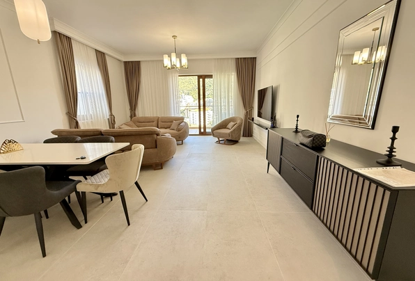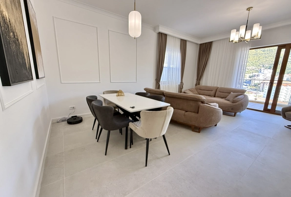 Аренда Бечичи № 7441. На долгий срок просторная современная квартира площадью 89 м² в новом доме в Бечичи, всего в нескольких минутах от моря. Квартира расположена на 1 этаже, полностью новая, с новой мебелью и бытовой техникой — готова к заселению! Планировка: две уютные спальни, просторная гостиная с выходом на террасу, кухня и обеденная зона, ванная комната и гардероб. Первая сдача!!! Преимущества: с террасы открывается красивый вид на море и горы, современный дом с качественным строительством, тихий район. Условия оплаты: первый месяц, последний и депозит. Счета оплачиваются отдельно. Свободна с 05.01.2026!!!