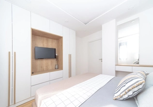 Аренда Будва №3359. Сдается квартира с 1 спальней до 1.06. Центр города. Новый дом WOW, лифт. Вид на море.