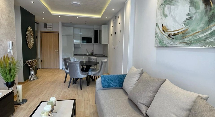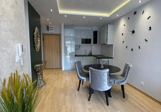 Аренда Будва № 7386. На год и больше квартира с 1 спальней, 43 м2, новый дом возле отеля Эден. Хороший ремонт, совре…