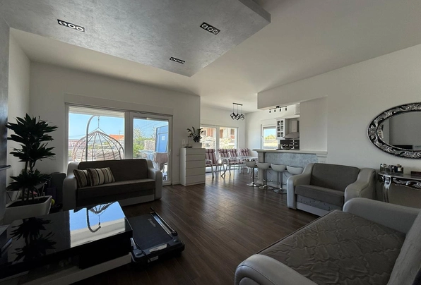 Аренда Кримовица № 7569. На годовую аренду вилла с 2 спальнями 106 м2, Кримовица. Современная вилла с новой мебелью и всей бытовой техникой. Большая территория возле дома, гараж, бассейн с лаунж зоной. Панорамный вид на море. Рядом пляжи Яз, Плоче, Трстено. Условия оплаты: первый месяц, последний и депозит. Счета оплачиваются отдельно.